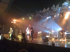 A glimpse of the stage revealed the set for the night’s entertainment. As you understand from one of you friends, A Vacant Affair, local band from Singapore, will be opening the show, thus explaining 2 drum sets on stage. (another one clothed, behind the other, faintly seen in the picture.)